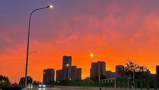 • 北京雨后橙色晚霞漫天 上演极致视觉盛宴