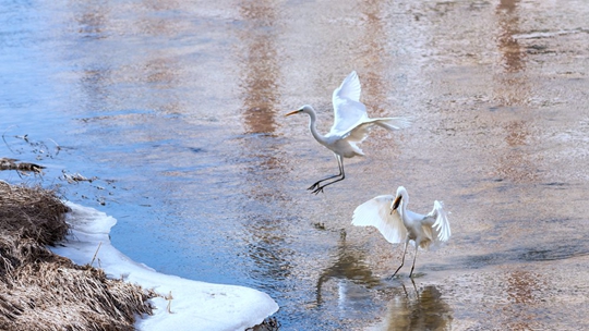 • 陕西延安河面尚未封冻 白鹭悠闲觅食