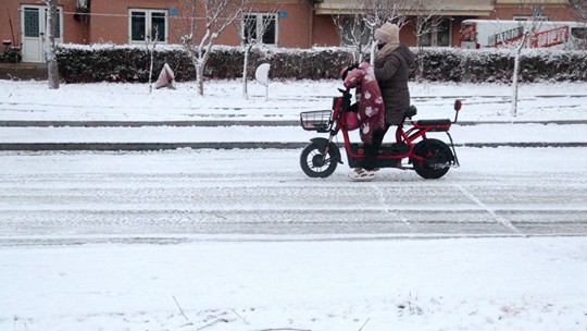 沈阳雪花纷飞迷人眼 道路湿滑影响出行